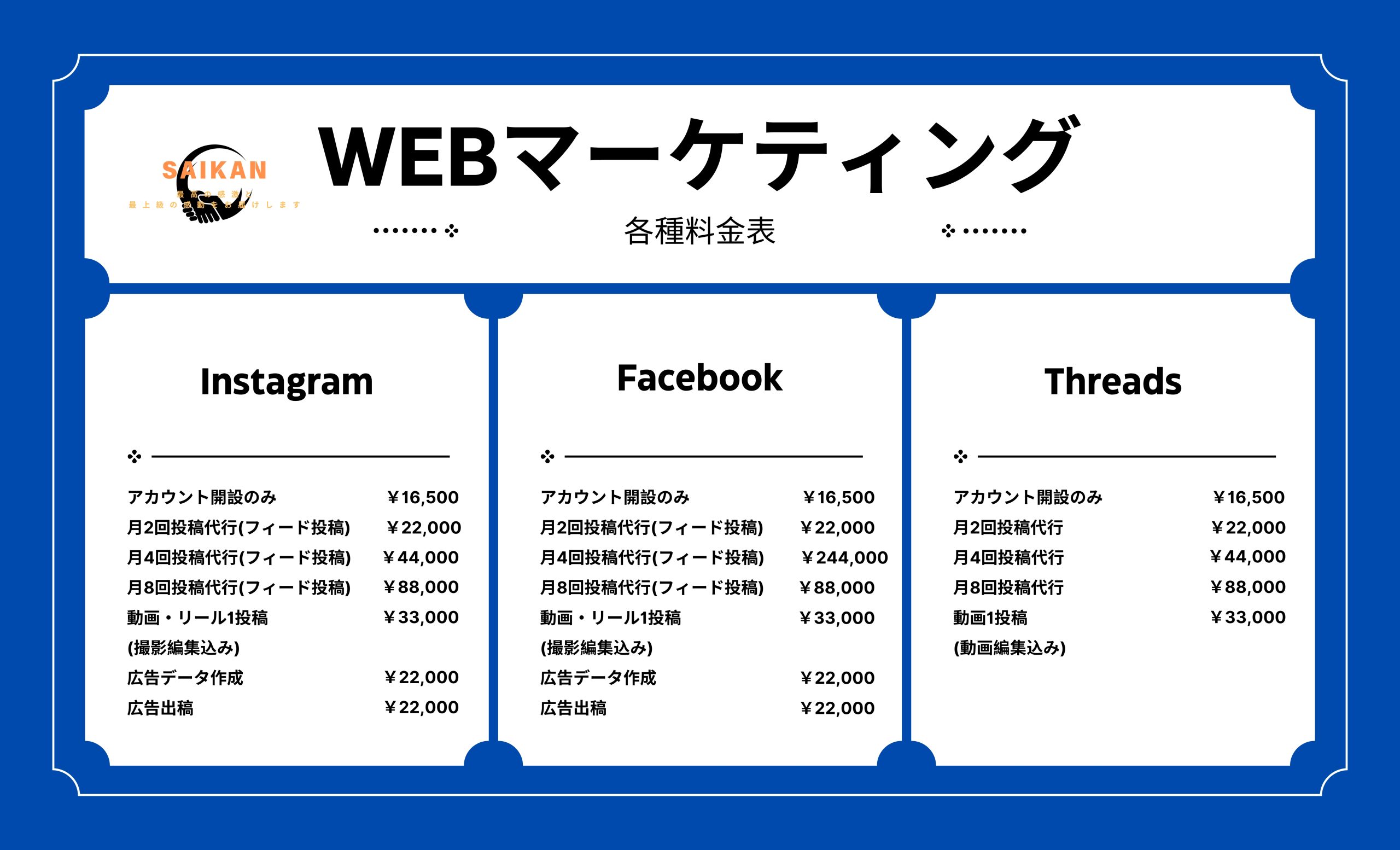 ※各SNS代行に関しては、契約書の取り交わしと申し込み金お支払い後実施させて頂きます