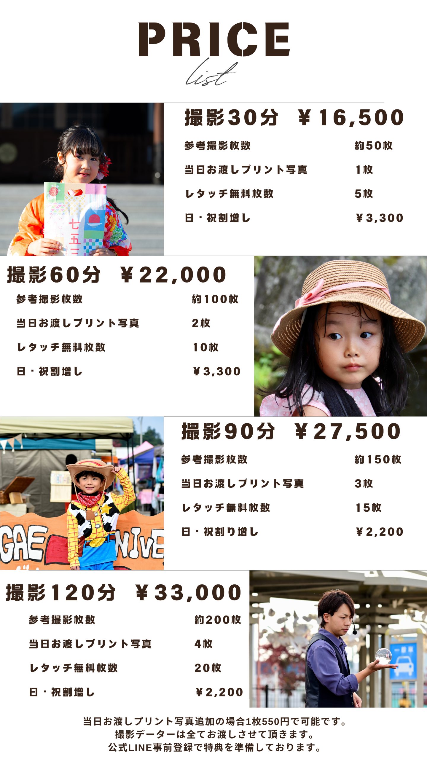 出張写真撮影料金表